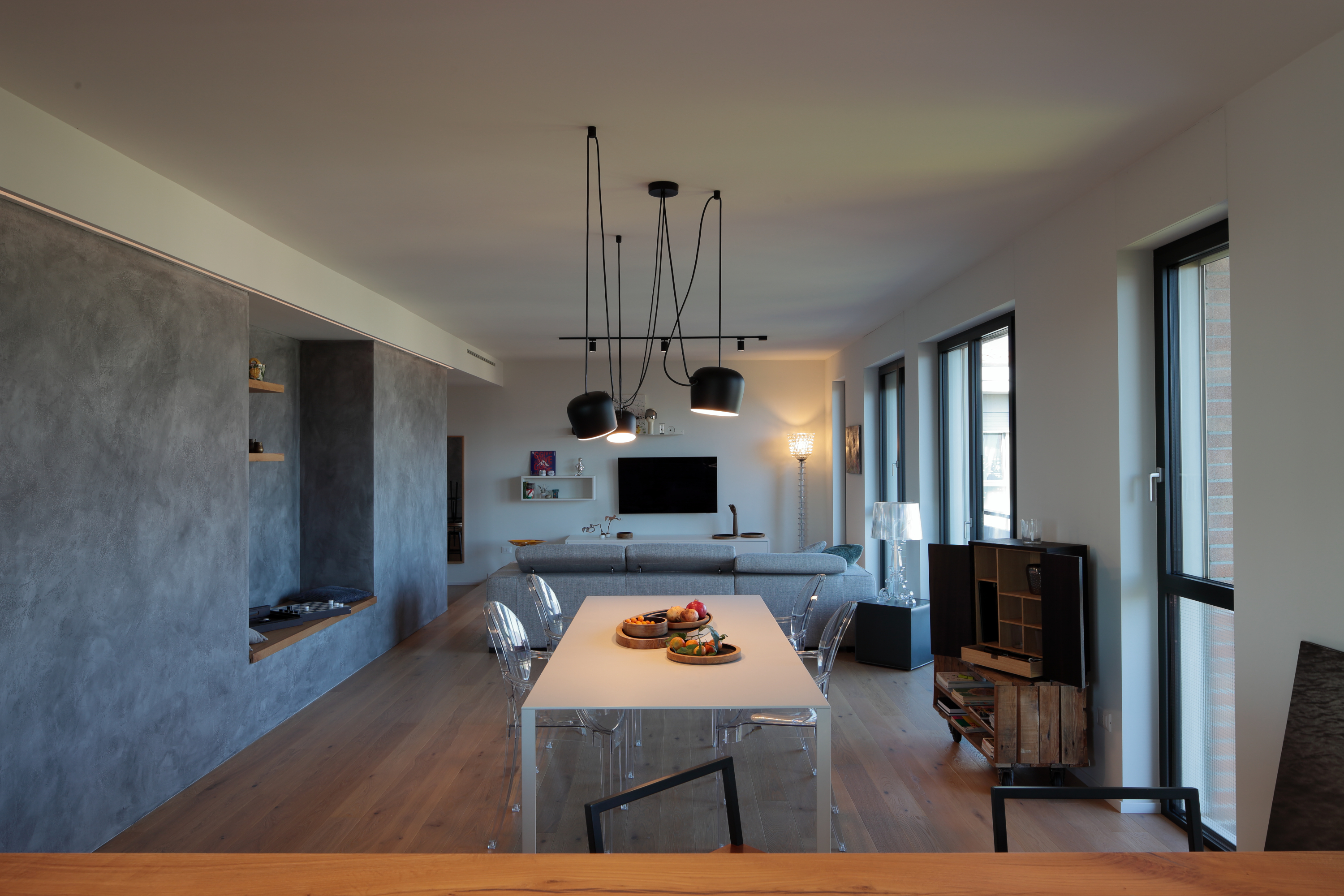 Il concept progettuale nasce dalla volontà di dare una risposta semplice ad un bisogno complesso qual è quello dell’abitare gli spazi in modo funzionale rendendoli allo stesso tempo accoglienti e confortevoli. Si predilige quindi la semplicità all’opulenza, utilizzando linee pulite sia nella creazione dei nuovi ambienti che nella realizzazione degli elementi di arredo che, “fondendosi” spesso con la struttura, contribuiscono alla percezione di un tutt’uno formale e compositivo.
